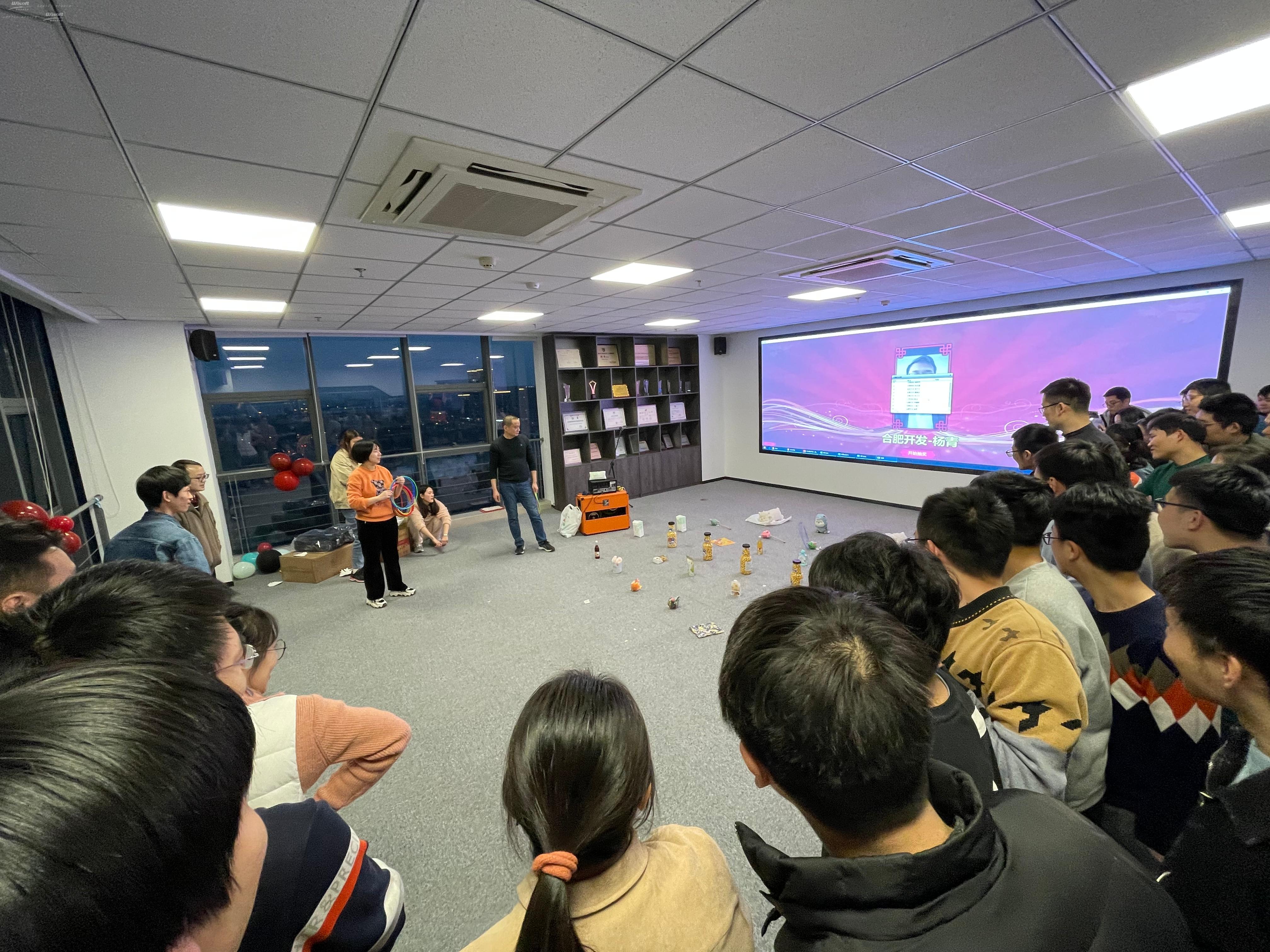 虎 年 SPRING FESTIVAL 虎 李总致辞 年 2022年1月21日,中科惠软线上年会在无锡本部举办,合肥研发中心、淮安交付中心及各驻地项目实施人员通过线上连接的方式参与了本次年会,公司全体员工在“云端”回顾过去,展望未来。 “2021年公司业绩实现高速增长,总体发展趋势向好,但在今后仍面对很多挑战,我们应当做好充分准备。”公司总经理李文峰在年会上发表致辞,就中科惠软在2021年的主要成绩和亮点、当前行业发展形势、智慧城市发展方向及2022年主要工作作出了重要部署。 (总经理 李文峰) 虎 员工表彰 年 公司的发展离不开每一位员工的辛勤付出和努力,对表现杰出的员工进行表彰,既是对优秀员工的肯定,也是对其他员工的激励。本次年会对2021年新加入公司在短时间内融入公司、精于工作的员工进行了表彰,颁发了“最佳新人奖”;对勤恳付出、持续贡献,彰显榜样力量的同事颁发了“优秀员工奖”;对团结协作、共克难题的部门团队颁发了“优秀团队奖”。希望大家再接再厉,2022再创佳绩! (部分获奖同事) 虎 节目表演 年 年会中还有员工准备了节目,开发部的帅小伙准备了吉他独奏,合肥研发中心的同事们表演了合唱,淮安交付中心的同事表演了小品,各样节目穿插其中,引得同事们阵阵喝彩。 (吉他独奏 葛俊豪) 虎 年会抽奖 年 (抽奖奖品) 丰富的奖品在抽奖环节中引发一次又一次小高潮,中奖同事高高兴兴抱回奖品,未中奖的同事满心期待,整个抽奖过程刺激又紧张,使年会氛围愈发高涨。 年会准备了特别有年味儿的包饺子活动、互动性极强的小游戏、抽奖和节目。员工们参与活动,乐在其中。 包饺子在本次年会活动中分量十足。从饺子皮到饺子馅儿,都是同事们一手准备的,会和面的、会擀皮儿的、会调味的、会包饺子的,大家拿出各自的看家本领,包出美味漂亮的饺子。 虎 包饺子 年 (同事们大展厨艺) (我们的年会饺子) 一边包饺子,一边玩游戏。 套圈游戏是本次年会参与人数最多的活动了,简简单单的套圈引得大家跃跃欲试,套取摆放好的小礼品。根据每个人的套圈成果,聚在一起的同事们或是高声欢呼,或是唏嘘不已,套圈游戏会场笑声不断。 虎 小游戏 年 中科惠软2022年线上年会在一片欢声笑语中结束了,未结束的是我们惠软人不忘初心、继续前行的昂扬斗志。2022年是新的开始,中科惠软将继续努力,再创佳绩!