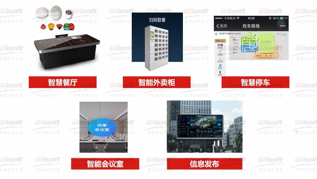 在满足办公需要和生活居住的同时,园区配有反向寻车服务的地下停车场、快速自助结算的智慧餐厅、具有保温功能的外卖柜、以及广告宣传发布的信息屏。
