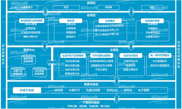 经过统一规划设计分析各技术子系统的作用和相互关系,进行优化重组,将交通电视监视、交通控制信号、交通事故、警用车辆GPS定位等实时动态信息、警力分布、交通诱导可变标志等数据采集后进行综合分析处理,以调度指挥预案和辅助决策算法模型为依托,对交通进行宏观、动态、实时调控,为交通管理部门快速有效地提供辅助决策,并通过交通信息发布系统向公众提供全方位的交通信息服务。