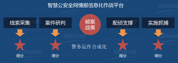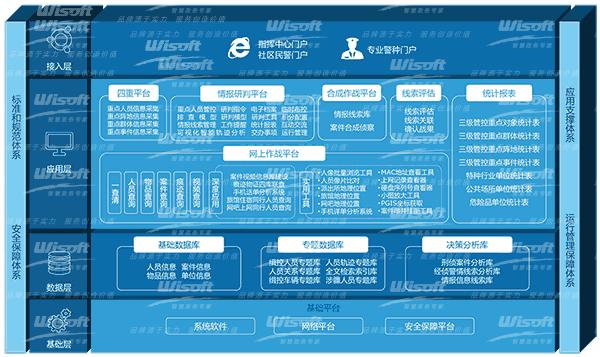 智慧公安全网情报信息化作战平台是集基础信息采集、情报信息研判、数据查询、全警种配合作战等功能于一体的多功能综合应用平台,从底层数据采集到高端研判应用自上至下贯穿公安局情报信息化业务。其中包括四重采集平台、网上作战平台、情报研判平台、合成作战平台等四大功能模块,为公安局信息化作战提供了有力的技术支持,丰富了民警办案的手段,提高了办案的效率。