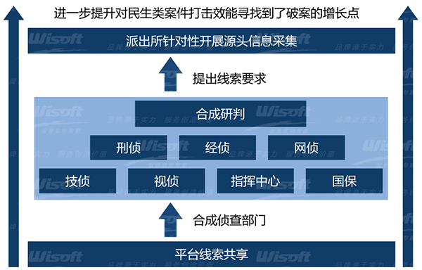 平台实现了系统建设向下延伸、数据资源向上汇聚,形成了部省市县四级情报平台联动的应用体系;同时为不同警种之间的联合侦查提供了平台支持,加大了警种之间的配合,为合成作战提供了有力的保障。