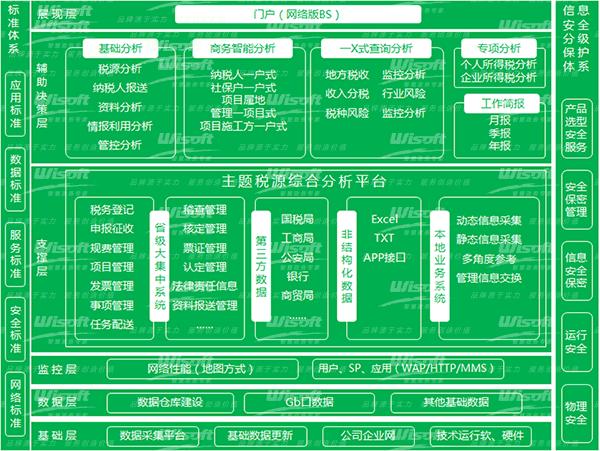 主题涉及税务登记、申报征收、规费管理、项目属地管理、发票管理、票证管理、事项管理、核定管理、认定管理、稽查管理、日常检查、纳税评估、收入质量、税源分析、减免税管理、纳税人报送资料管理、第三方数据管理、数据比对预警、风险宏观分析,为个人所得税和企业所得税设置专项分析。